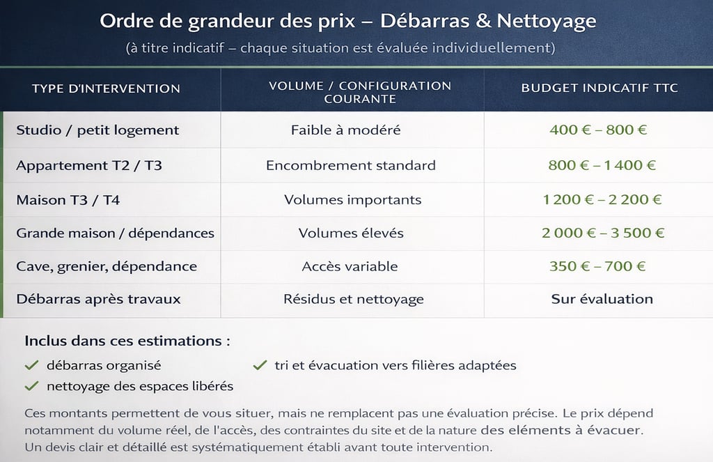 Prix d'un débarras & nettoyage : combien prévoir selon la situation ?