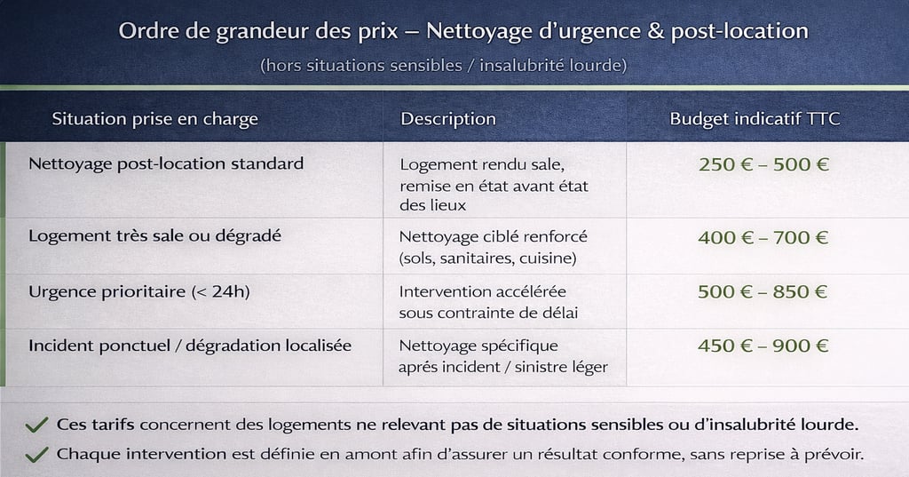 Prix d’un nettoyage post-location ou urgent : ce qu’il faut prévoir